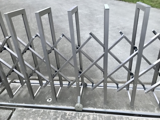 蛇腹式に伸縮する門扉で、主に駐車場やカースペースで活用されることが多いタイプです。開閉が簡単で、スペースが限られている敷地でもフレキシブルに使えるのが利点です。一方で、耐久性や防犯性では他のタイプより劣る場合があるため、設置場所や目的に応じて選ぶ必要があります。